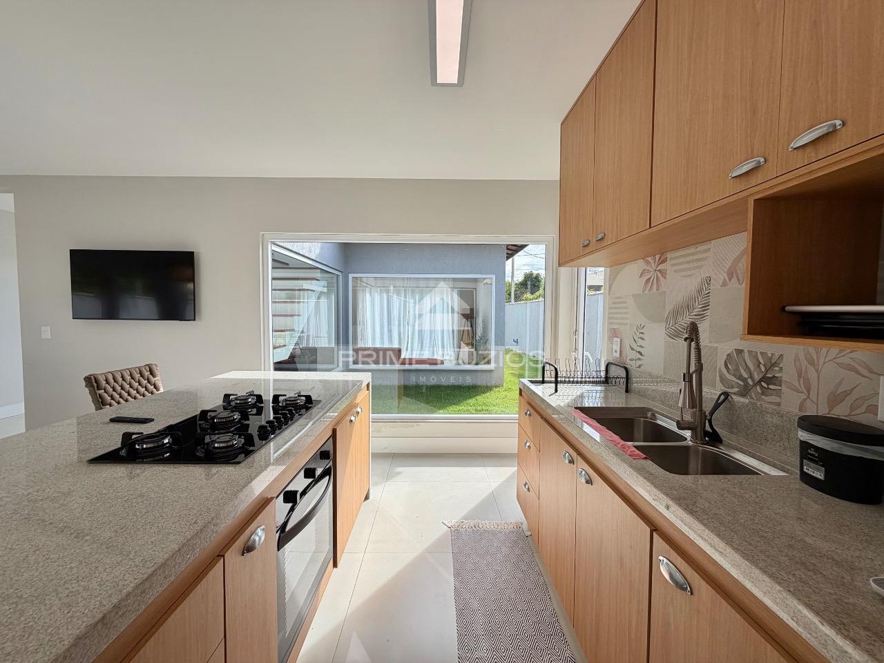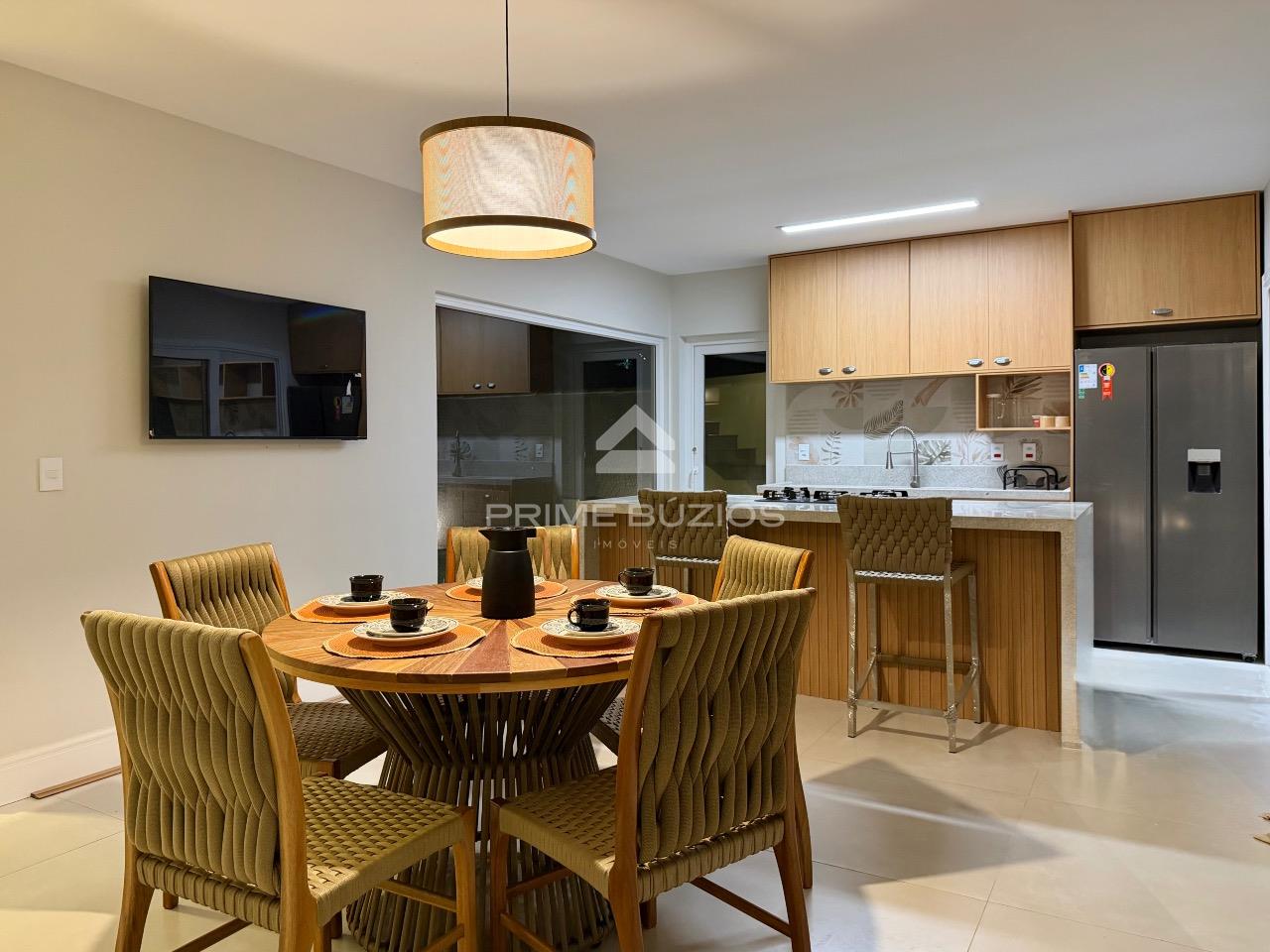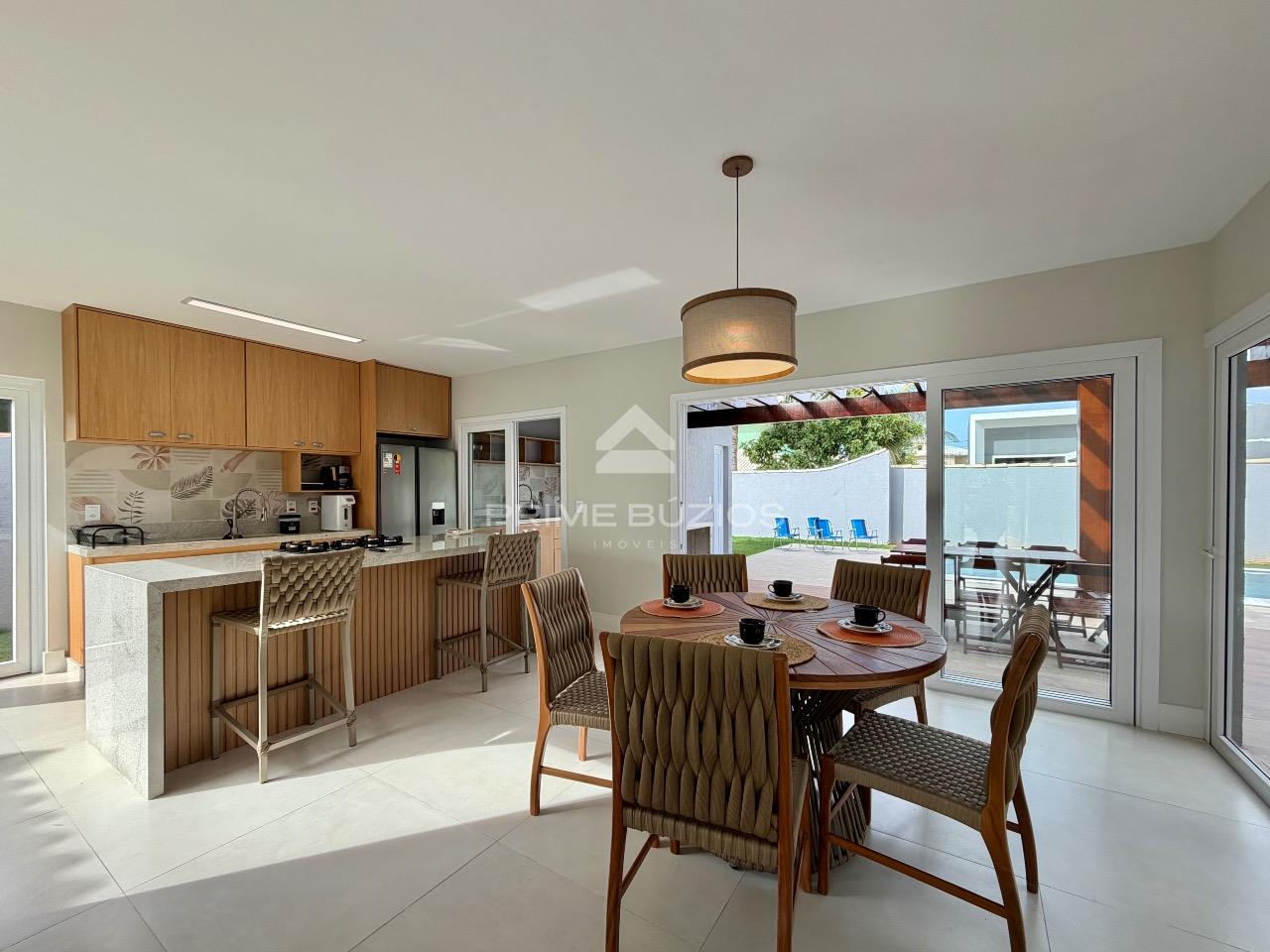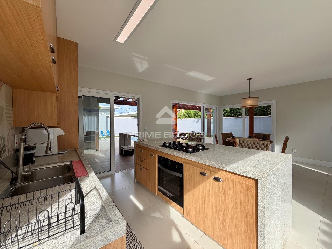Casa com 4 suítes, dividida em dois pavimentos, com 200m² de área construída, um exemplo de sofisticação e conforto. No primeiro andar, ao entrar, você é recebido por uma ampla sala de estar, perfeita para momentos de lazer e convivência. A sala de jantar, adjacente à cozinha, proporciona um ambiente ideal para refeições em família ou com amigos. A cozinha é equipada possui uma ilha central e integração com a área gourmet.