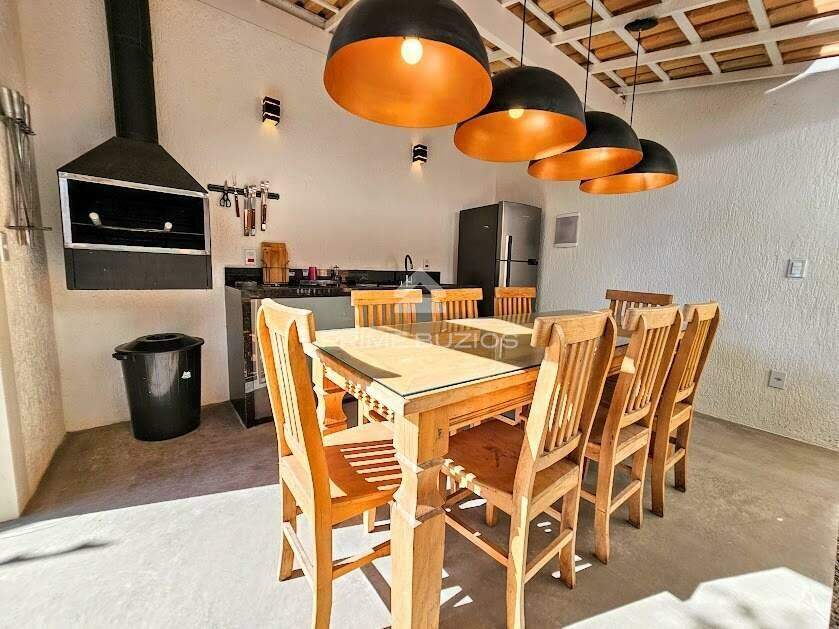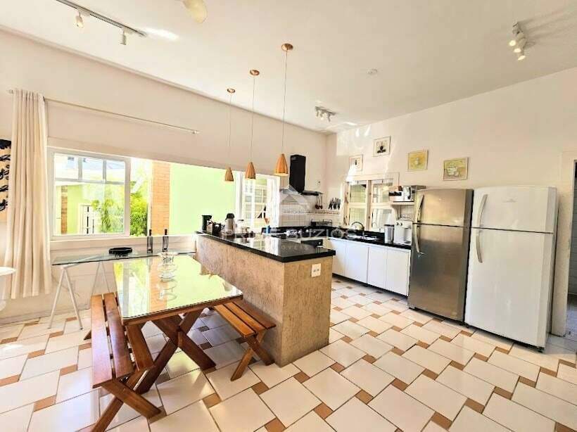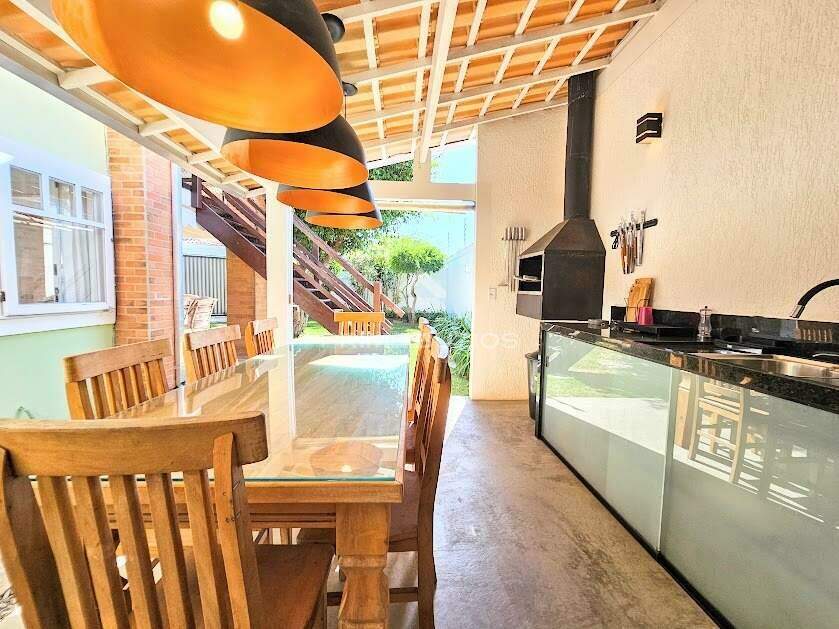 No pavimento inferior estão localizadas 3 suítes, sala ampla em dois ambientes com cozinha integrada.