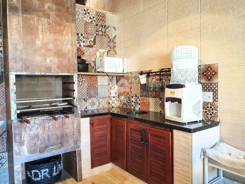 A área externa conta com varanda na frente da casa, espaço Gourmet, área de serviço e banheiro externo e quintal e 1 vaga de garagem. Condomínio com segurança, piscina adulto e infantil e quadra poliesportiva.