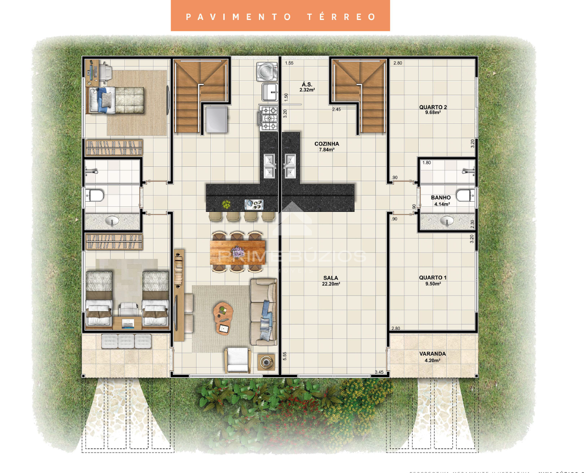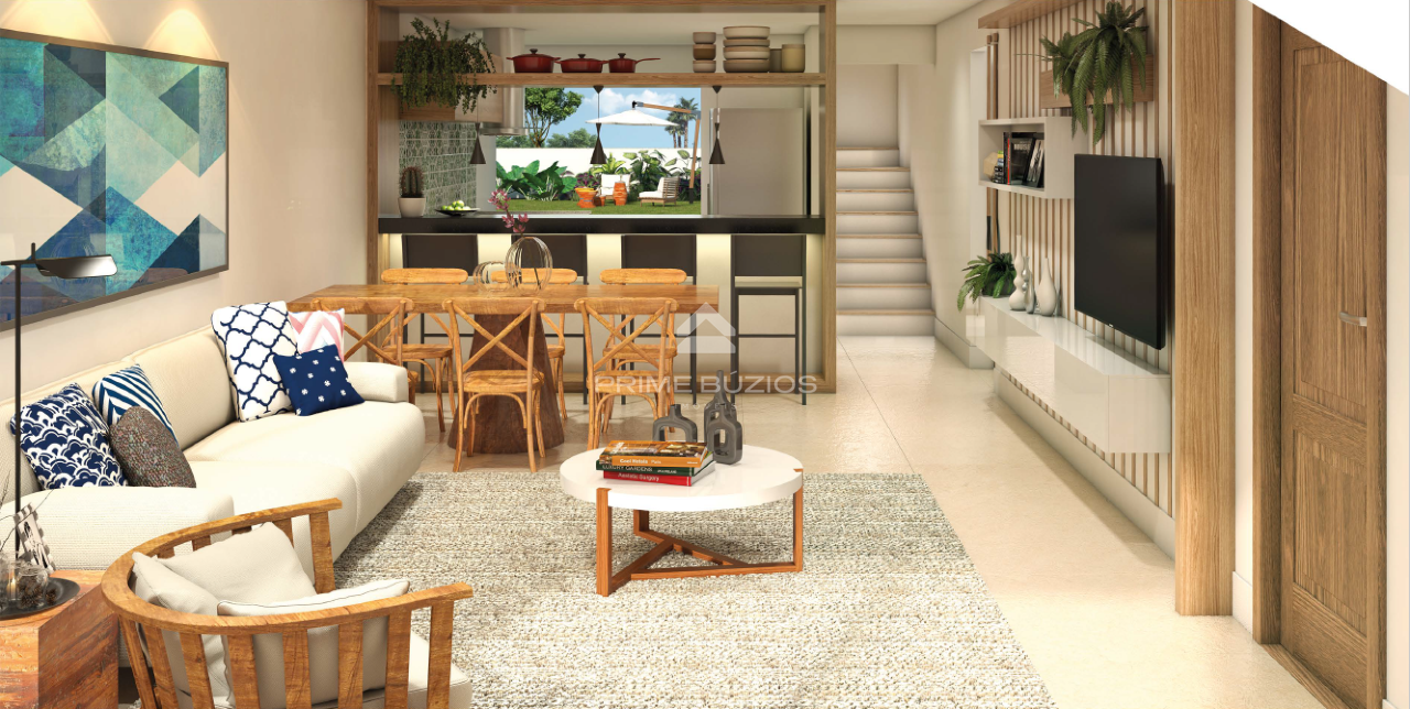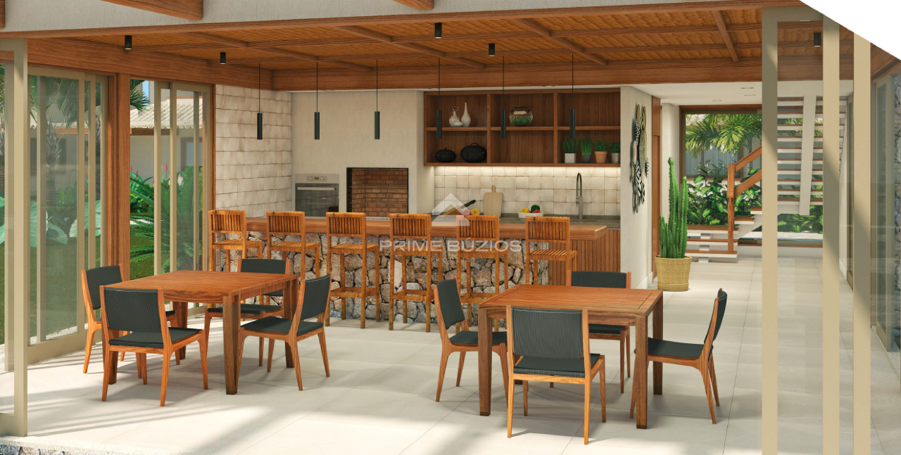 O condomínio oferece uma área de lazer com piscina adulto e infantil, sauna, deck com espreguiçadeiras, redário, espaço gourmet com churrasqueira, espaço fitness e portaria com monitoramento 24H, proporcionando um ambiente seguro e agradável para toda a família. A localização é privilegiada, em um dos bairros mais valorizados de Búzios, perto das praias e dos restaurantes e bares charmosos do Porto da Barra, unindo o melhor da tranquilidade com a conveniência de serviços e lazer ao redor.